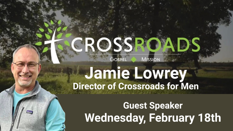 We’re excited to welcome Jamie Lowrey, Director of Crossroads for Men, as our guest speaker on Wednesday, February 18th. Join us as he shares about Gospel-centered mission and life transformation. You won’t want to miss this powerful evening!